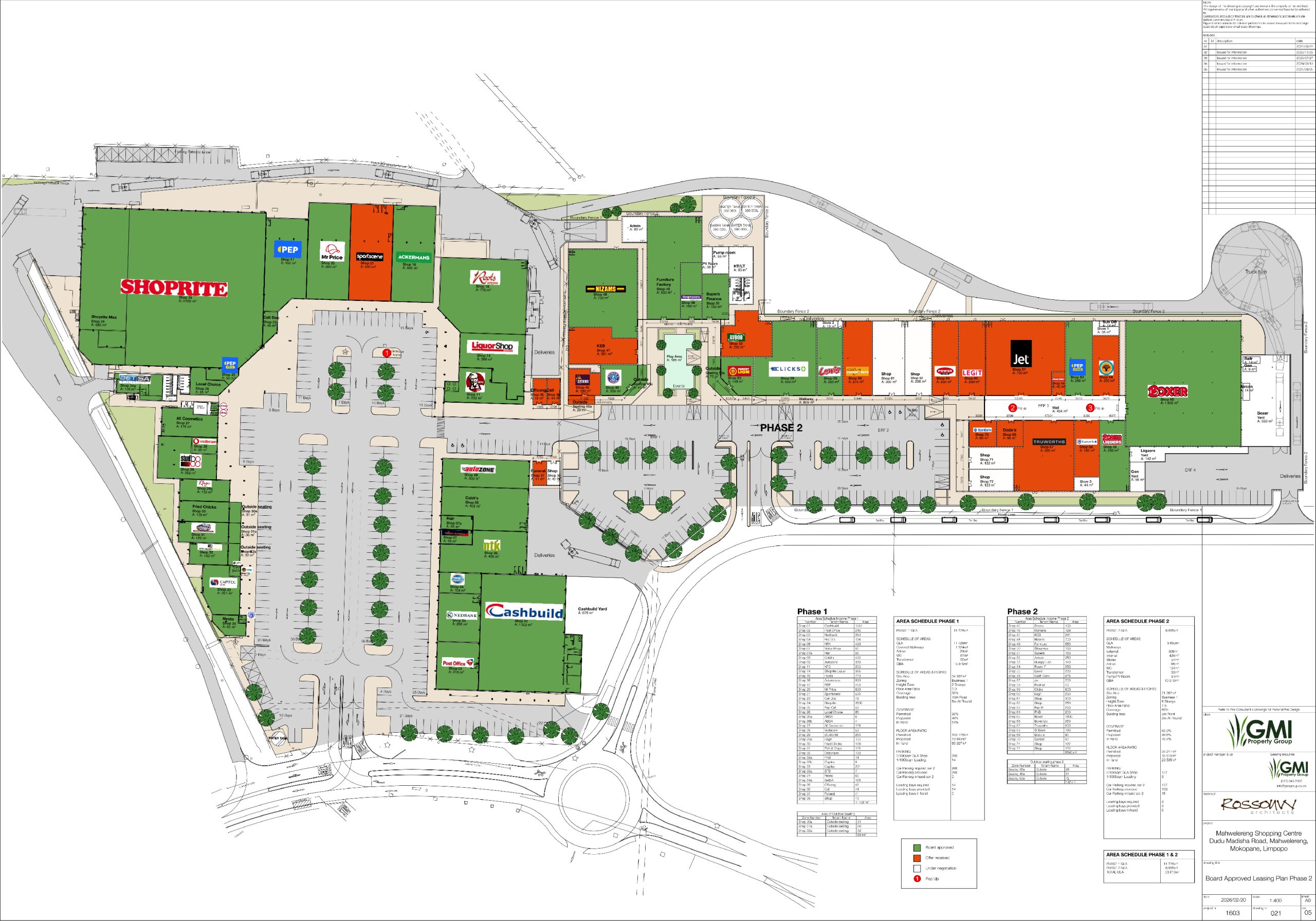 GMI Property Group is thrilled to announce the continued growth and expansion of the Mahwelereng Retail Node, a thriving commercial hub strategically located to serve the dynamic and growing Mahwelereng community.