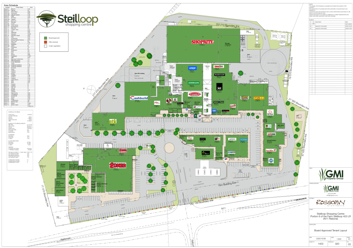 The existing shopping centre, located 100km north of Rebone on the N11, currently measures approximately 16,000 sq m. Following its expansion and refurbishment, it will gain an additional 13,000 sq m. Some of the existing tenants include; Cashbuild, FNB, SA Post Office and PEP. The centre with it’s expansion will be anchored by Boxer and Boxer Liquor and will have approximately 50 stores, which includes Galitos, BetSA, Mr Price, Sportscene, Totalsports, Studio 88, Exact, Rage and more!